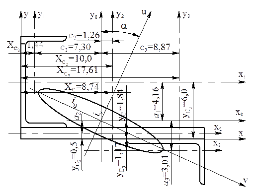 По найденным радиусам инерции строим эллипс инерции, откладывая их значения относительно соответствующих осей.