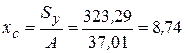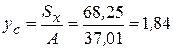 1. Определяем положение центра тяжести составного сечения относительно вспомогательной системы координат х, у.