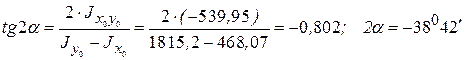 - где знак минус центробежного момента инерции определяется по его знакам в квадрантах относительно собственных центральных осей