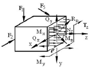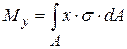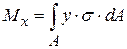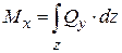 - изгибающие моменты равны сумме моментов всех внутренних сил, действующих в сечении, относительно поперечных осей х, у.