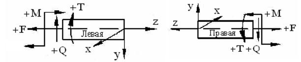 Правило знаков при определении внутренних силовых факторов в соответствии с рисунком 3.2