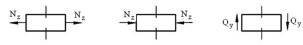 - поперечные силы в любом сечении равны алгебраической сумме проекций всех внешних сил, действующих на отсеченную часть стержня, на поперечные оси y, x.