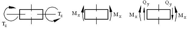Крутящий момент от внешних нагрузок положителен, если он действует по часовой стрелке относительно оси z любой отсеченной части стержня.