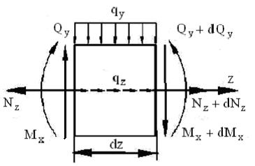 Между интенсивностью внешней распределенной нагрузки и внутренними силовыми факторами, а также между внутренними силовыми факторами существуют дифференциальные зависимости. Рисунок 3.4.