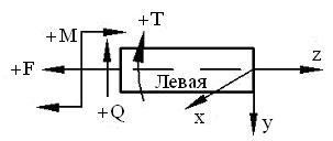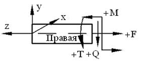 Крутящий момент от внешних нагрузок положителен, если он действует по часовой стрелке относительно оси z любой отсеченной части стержня.