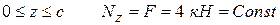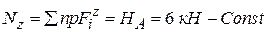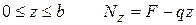Для участка СВ в произвольном месте проводим сечение. Для составления уравнения Nz выгодно рассматривать всю правую отсечённую часть стержня с системой координат x, y, z для правой отсечённой части. На всю правую отсечённую часть действует внешняя сосредоточенная сила F и равнодействующая равномерно распределённой нагрузки