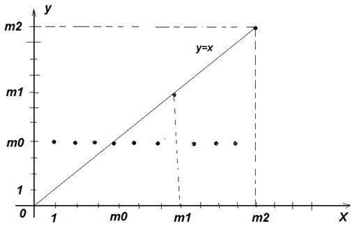 Если М={ m0, m1, m2, …, mn,.. } и m0,<m1<m2 <…<mn, то график функции