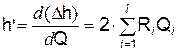 Чтобы определить невязку расхода DQ по невязке депрессии Dh, надо знать величину невязки депрессии, соответствующую изменению расхода на единицу, т.е. производную