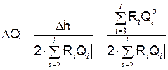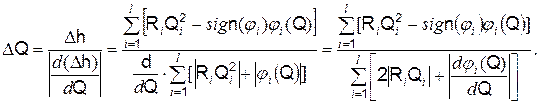 Очевидно, что общее изменение расхода DQ, соответствующее полной невязке депрессии Dh, будет