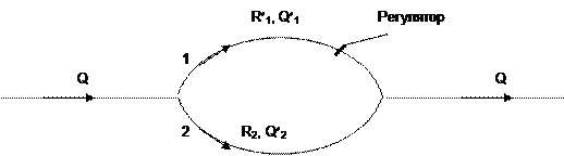 Рассмотрим движение воздуха в параллельном соединении ветвей по схеме, представленной на рис. 17.3. Предположим, что по условиям производства требуется увеличить подачу воздуха в ветвь 1 и одновременно снизить подачу в ветвь 2.