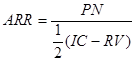 Этот метод имеет две характерные черты: во-первых, он не предполагает дисконтирования показателей дохода; во-вторых, доход характеризуется показателем чистой прибыли PN (прибыль за минусом отчислений в бюджет). Алгоритм расчета исключительно прост, что и предопределяет широкое использование этого показателя на практике: коэффициент эффективности инвестиции, называемый также учетной нормой прибыли (ARR), рассчитывается делением среднегодовой прибыли PN на среднюю величину инвестиции (коэффициент берется в процентах). Средняя величина инвестиции находится делением исходной суммы капитальных вложений на два, если предполагается, что по истечении срока реализации анализируемого проекта все капитальные затраты будут списаны; если допускается наличие остаточной или ликвидационной стоимости (RV), то ее оценка должна быть учтена в расчетах. Иными словами, существуют различные алгоритмы исчисления показателя ARR, достаточно распространенным является следующий: