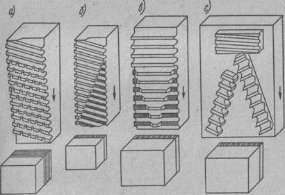 Рис. 7. Схемы плоских протяжек: а — обычные; 6, в, г — прогрессивные.