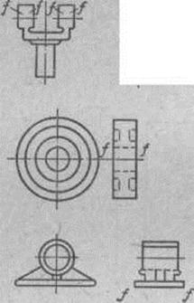 Протягивание наружных поверхностей производится большей частью на вертикально-протяжных станках — полуавтоматах и автоматах. На рис. 8 показаны детали, поверхности которых обрабатываются наружным протягиванием (обрабатываемые поверхности обозначены буквой