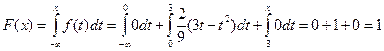 Поскольку плотность вероятности отлична от нуля только на отрезке [0;3], то интеграл по всему промежутку