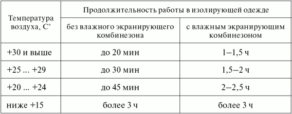 Время пребывания в средствах индивидуальной защиты существенно зависит от температуры окружающей среды (табл. 6).