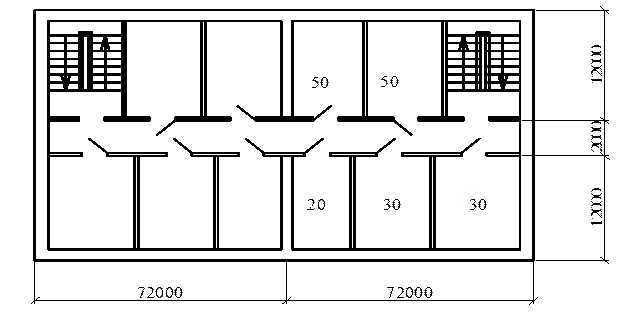 В существующем 3-х этажном здании предполагается разместить деревообрабатывающее производство. Сведения о конструкциях здания и численности работников в каждом из помещений типового этажа приведены в табл.1. План типового этажа приведен на рис.1.