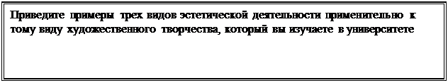 Полноценно и разносторонне развитой в эстетическом отношении личностью принято считать человека, знакомого со всеми видами искусств, причем хотя бы с одним из них – на всех уровнях деятельности, т.е. …….……………………………………………………………………………….