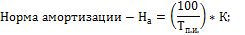 - метод уменьшаемого остатка – норма амортизации рассчитывается путем умножения амортизационной стоимости на норму амортизации, но с учетом коэффициента ускорения (К), принятого на предприятии (до 2,5 раза):