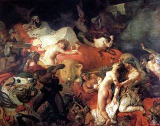 --несколько маргинальное настроение для того времени. Делакруа интересует Рубенс, Тициан, Венецианская живопись 16 века. Пренебрегает титанами Ренессанса