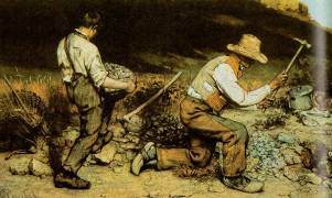-Перед нами отец и сын. Фигуры почти в натуральную величину. Показана вся тяжесть человеческой жизни. Перекличка с классикой: большой размер, неглубокое пространство, фигуры хорошо вылеплены. Работает по темному холсту.
