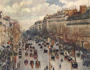 В последние годы жизни у Камиля Писсарpо заметно испортилось зрение. Несмотря на это, он продолжал работу и создал серию видов Парижа, наполненных великолепными художественными эмоциями. Необычный ракурс этих полотен объясняется тем, что художник писал их не на улице, а из гостиничных номеров. Эта серия стала одним из высших достижений импрессионизма в передаче света и атмосферных эффектов и во многом его общеизвестным символом.