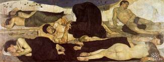 картина показана на парижской выставке 1890 года, где стала главной вещью. Декоративность, изучение натуры. Ходлер пишет по сетке, тщательно прорабатывая поверхность. Плоские пятна одежд / гатурализм трактовки человеческого тела. Тема наступления мрака, неразрывности тёмного и светлого, добра и зла. Человек – на их перепутье.