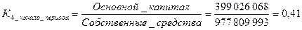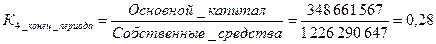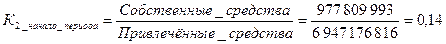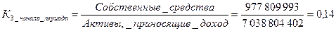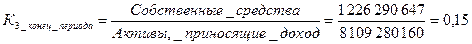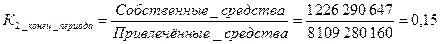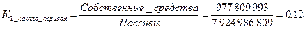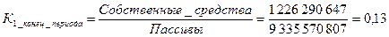 Коэффициент достаточности капитала К1. Определяет уровень собственных средств в структуре пассивов. К1_рекоменд=0,15-0,20.