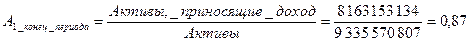 Уровень доходных активов А1. Доля активов, приносящих доход, в активах банка. Позволяет оценить эффективность активов. А1_рекоменд=0,76-0,83.
