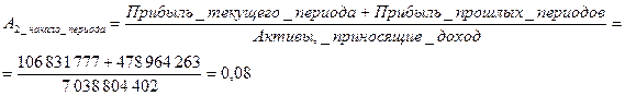 | Уровень доходных активов | А1 | 0,76-0,83 | 0,89 | 0,87 | -0,01 | улучшение | близко к норме, требуется уменьшение |