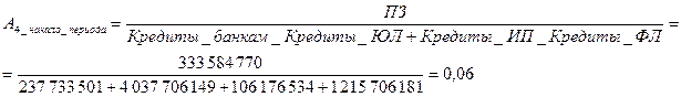 | Уровень сомнительной задолженности | А4 | А4max=0,05 | 0,06 | 0,04 | -0,02 | улучшение | норма |