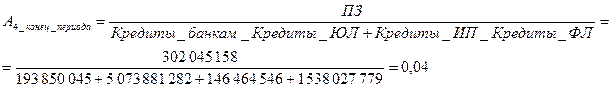 Уровень сомнительной задолженности А4. Характеризует качество активов (кредиты, включая межбанковские) с точки зрения проблематичности их возврата. А4_max=0,05.