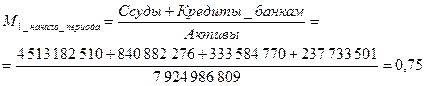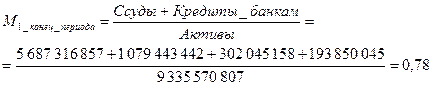 Общая кредитная активность М1. Характеризует качество управления активами с позиции их структуры, а именно – доли кредитов в активах. М1_рекоменд=0,55-0,80.