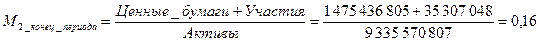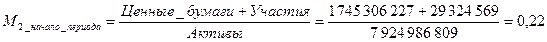 Инвестиционная активность М1. Характеризует политику банка в области инвестирования средств в ценные бумаги и управления предприятиями. Рекомендуемые значения показателя не устанавливаются, целесообразно оценивать в динамике.