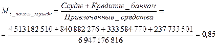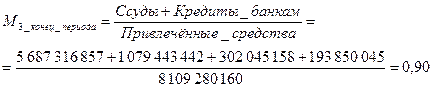 | Коэффициент использования привлечённых средств | М3 | 0,80 | 0,85 | 0,90 | 0,04 | ухудшение | требуется уменньшение |