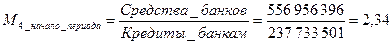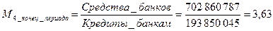 Коэффициент рефинансирования М4. Характеризует степень использования наиболее дорогой составляющей банковских ресурсов – кредитов, полученных из других банков (межбанковские займы). М4_рекоменд=1,00. Снижение значения коэффициента свидетельствует об увеличении количества менее дорогих ресурсов, размещаемых банком в высокодоходных операциях – межбанковском кредитовании.