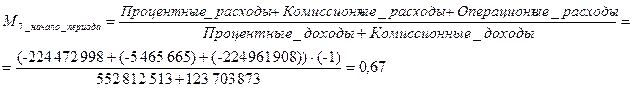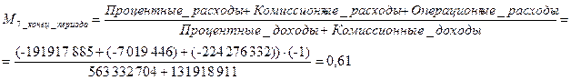 При этом имеющихся данных недостаточно для расчёта показателя по данным формулам, поскольку отчёт о прибылях и убытках (см. Приложение 5) содержит ряд статей доходов в формате чистых доходов (за вычетом расходов). Например, это относится к статье «Чистый доход по операциям с ценными бумагами». Однако, отчёт о прибылях и убытках содержит данные о процентных доходах и расходах и комиссионных доходах и расходах, что позволяет определить показатель М7 для процентных и комиссионных операций (с учётом операционных расходов). Для прочих операций следует учесть, что в целом они доходны, за исключением отрицательного дохода по операциям с иностранной валютой и операциям переоценки драгоценных металлов.
