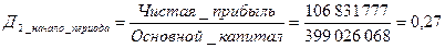 Коэффициент рентабельности основного капитала Д2. Предназначен для определения эффективности использования средств собственников. Рекомендуемые значения показателя не устанавливаются, целесообразно оценивать в динамике.