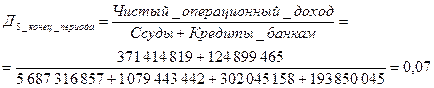| Коэффициент доходности кредитных операций | Д5 | - | 0,08 | 0,07 | -0,01 | ухудшение | требуется увеличение |