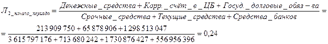 | Коэффициент уровня «резервов второй очереди» | Л2 | 0,08-0,12 | 0,24 | 0,17 | -0,07 | улучшение | близко к норме, требуется уменьшение |