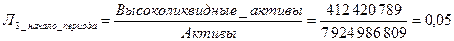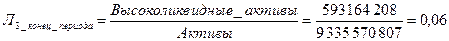 Коэффициент уровня высоколиквидных активов Л3. Характеризует возможность активов банка обмениваться на денежные средства. Л3_рекоменд=0,12-0,15.