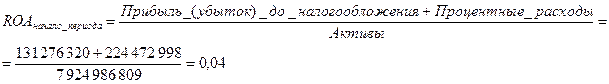 | Рентабельность активов | ROA | - | 0,04 | 0,05 | 0,01 | улучшение | норма |