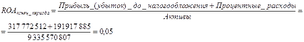 Определим также показатели эффективности – рентабельность активов (ROA) и рентабельность капитала (ROE).