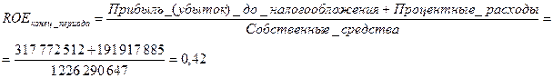 | Рентабельность капитала | ROE | - | 0,36 | 0,42 | 0,05 | улучшение | норма |