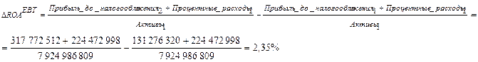 Итак, влияние прибыли до налогообложения составляет 2,35 %. При наличии более детальных данных возможно было бы, используя фактор-анализ: