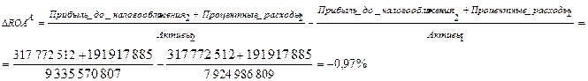 Для примера, используя элементы технологии факторного анализа (метод цепных подстановок), оценим влияние роста объёмов кредитования малого бизнеса и физических лиц на ROA Сбербанка. Из-за недостатка промежуточных данных проведём анализ в общем формате – сравним влияние прибыли до налогообложения, процентных расходов, активов на рентабельность активов, учётом того, что