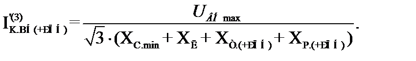 -ток КЗ в минимальном режиме работы электроэнергетической системы при максимальном положении РПН.
