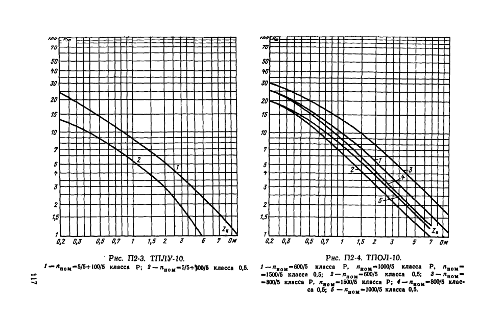 | Рис.1 | 1-nном=5/5-300/5 классР; 2-nном=5/5-300/5 класс0,5; 3-nном=400/5 классР; 4-nном=400/5 класс0,5; |