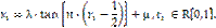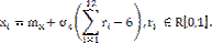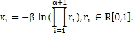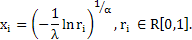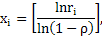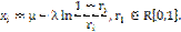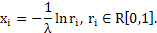 Случайные числа получаются из случайных чисел ri, распределенных равномерно на [0,l], на основе соотношения