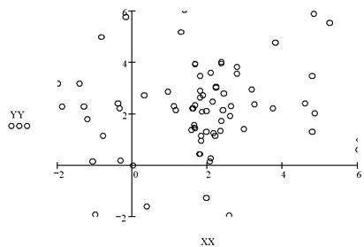λ:=1 μ:=2 n:=100 XX:=KORASP(λ,μ,n) YY:=KORASP(λ,μ,n)