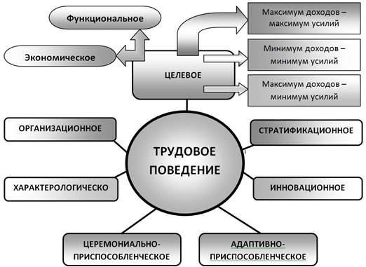 2) Целевое поведение подразделяется на функциональное (цели связаны с функциями работника) и экономическое (поведение работника определяется стремлением к достижению уровня определённого благосостояния и улучшению своей жизни). Экономическое поведение определяет постоянное сопоставление затрат своего труда с компенсацией за них. Кроме того, экономическое поведение имеет три формулы проявления: 1) максимум доходов ценой максимума усилий; 2) минимум доходов ценой минимума усилий; 3) максимум доходов ценой минимума усилий. Каждую из этих формул легко распознать и принять меры против работников, следующих формуле 2 и 3. В рыночной экономике может поощряться только тип экономических отношений, выраженный формулой №1.